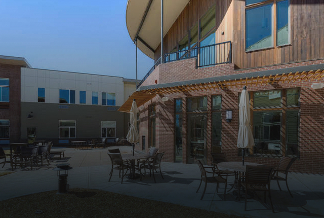 Patios and seating areas that encourage socialization and fresh air.